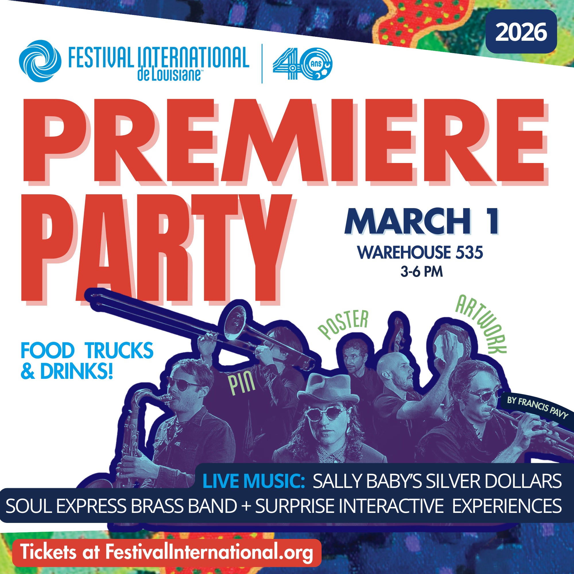 The Festival International Premiere Party is coming up! Save the date for March 1st - Be the FIRST to see the 2026 artwork by Francis Pavy, plus the pin & poster reveal! Tickets & event info below.
